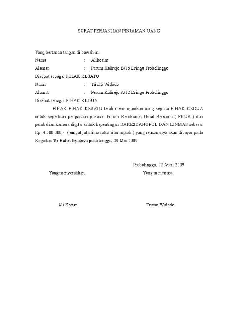 Sep 06, 2020 · dengan ditandatanganinya surat perjanjian kesepakatan kredit berarti bank dan debitur telah terikat untuk melaksanakan.